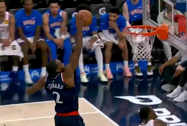 开云体育官网-伦纳德抢断反击单臂滑翔劈扣拿19分,快船追至落后雷霆20分