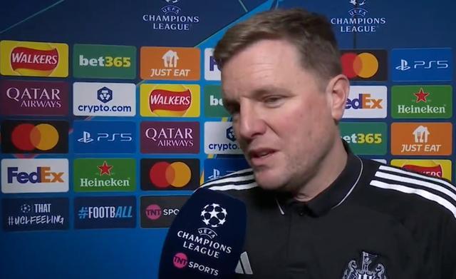 欧冠联赛阶段第7轮,纽卡主场3-0战胜埃因霍温,纽卡主帅埃迪-豪赛后接受了TNT体育的采访。